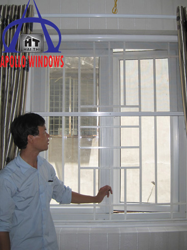 Cửa cánh mở khung nhôm Xingfa hệ 55 dày 2ly lưới Inox 304 phủ sơn xám dày 0,7mm